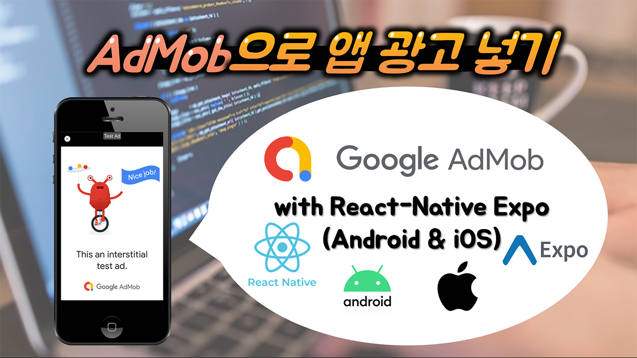 이번 영상은 지난 영상에서 만든 리엑트 네이티브(React Native) 엑스포(Expo) 앱에 구글 애드몹 전면 광고(Interstitial Ads)를 넣는 실습 영상입니다. 이렇게 어플에 광고를 넣어 수익형 앱을 만들 수 있습니다. 다른 종류의 광고 단위도 유사한 방법으로 진행하실 수 있습니다.