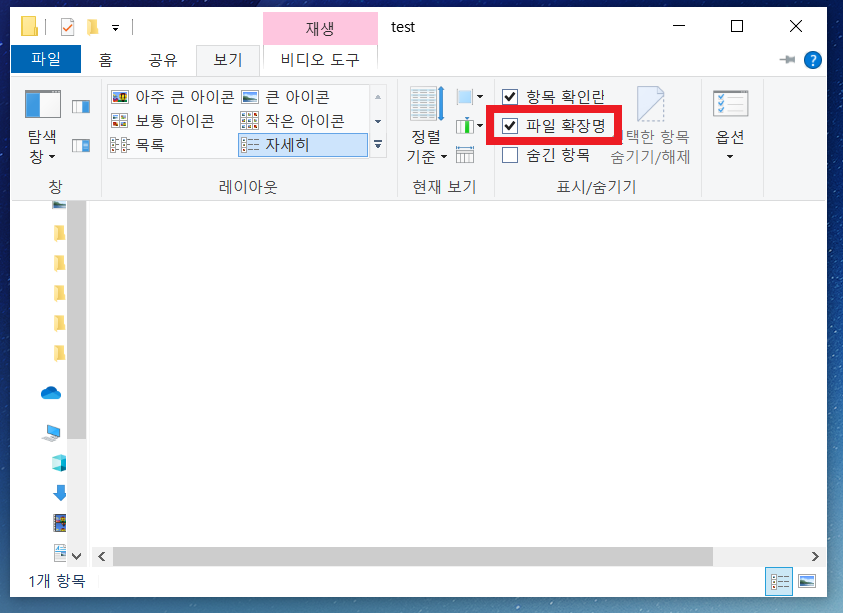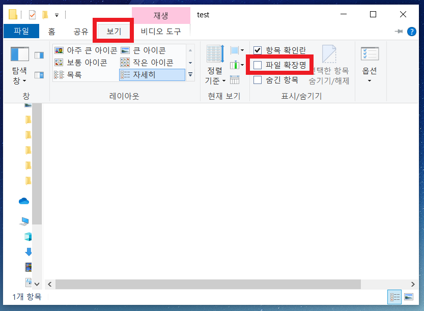2. 상단에 [보기] 메뉴의 [파일 확장명] 체크박스를 클릭합니다.